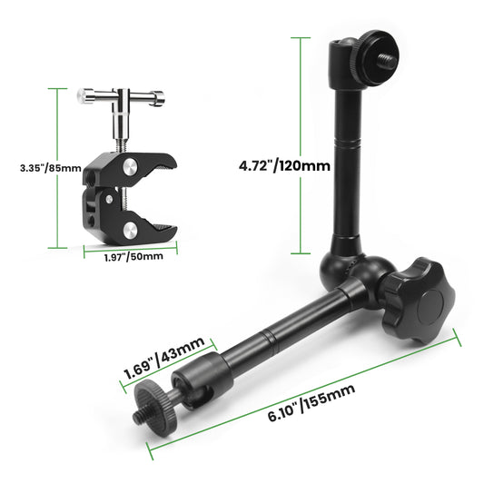 MOKOSE Adjustable Articulating Magic Arm and Super Clamps with 1/4”and 3/8” Threaded for Cameras, LCD Monitors/LED Lights, Webcams