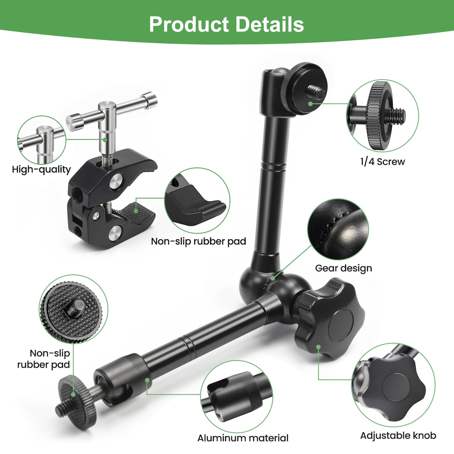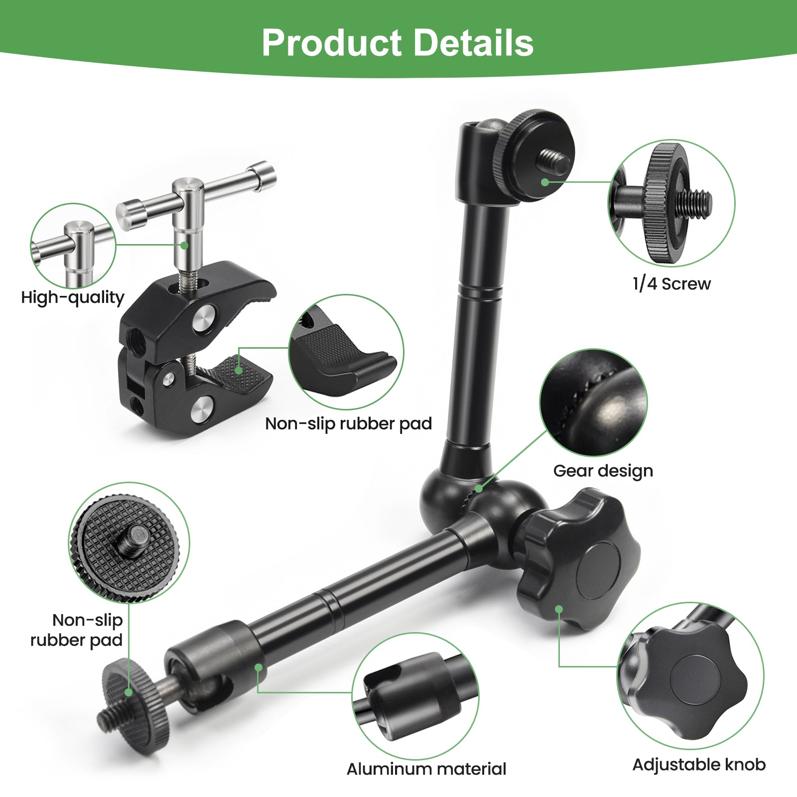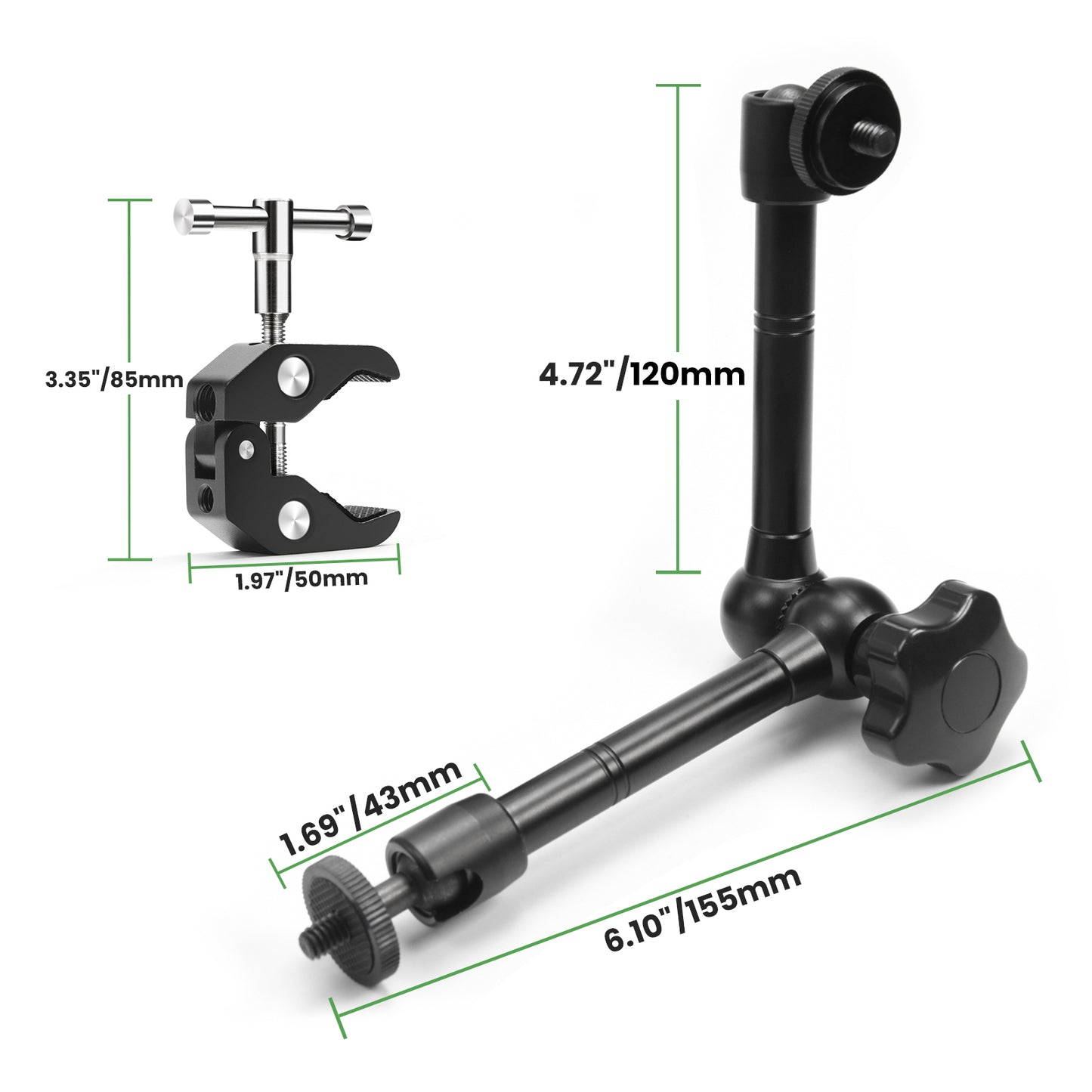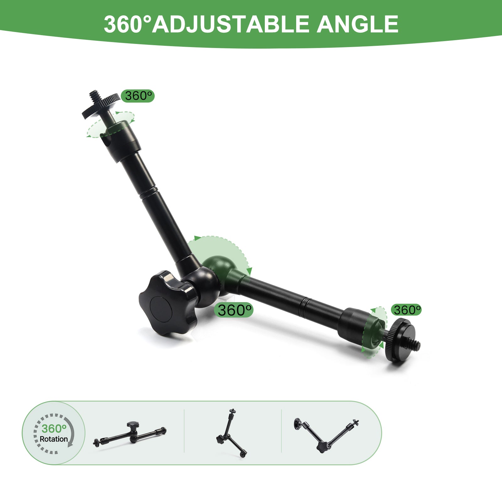 【WIDE COMPATIBILITY】Magic Arm has 1/4 inch threads on both ends to mount any camera, microphone, LCD monitor, DV monitor, smart phone, LED light, etc.